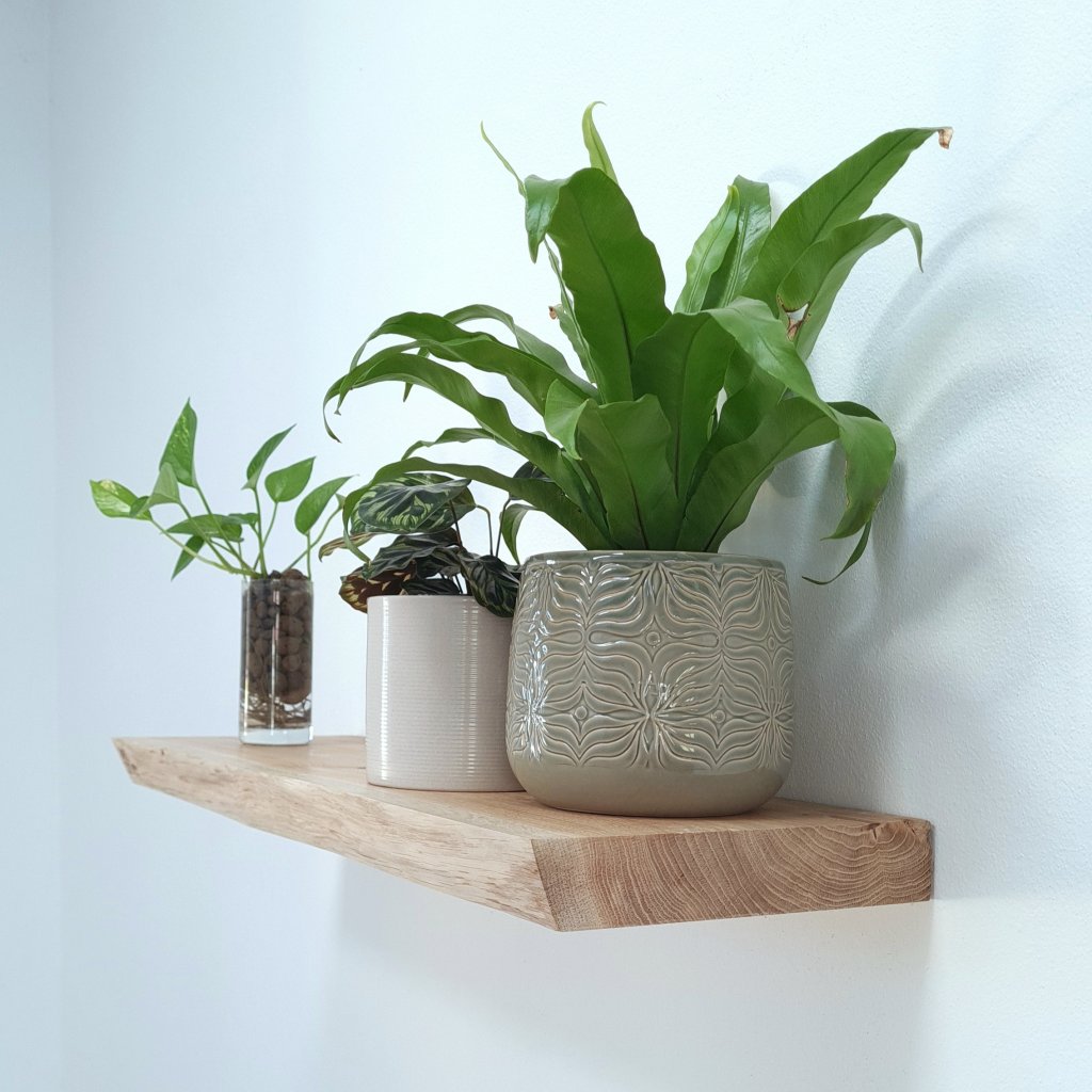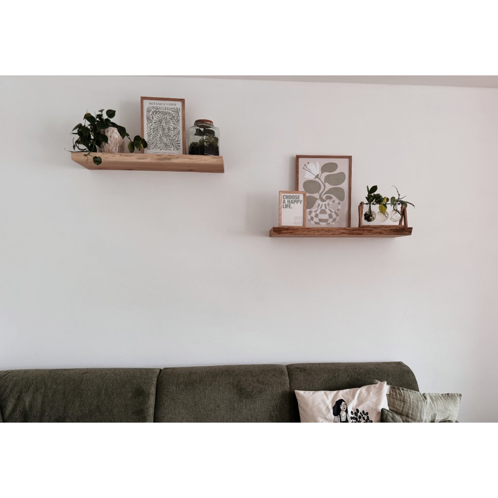 Police drží pevně na zdi, ale úchyty nejsou vidět – prostor tak působí čistě a vzdušně.